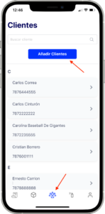 - En la pantalla de gestión de clientes, encuentra y pulsa el botón “Añadir Clientes”.