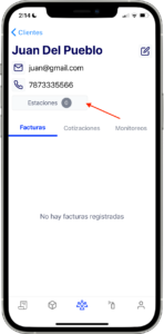 - Dentro del perfil del cliente, presiona el botón “estaciones”.