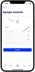 - Utiliza el icono de barras de código para escanear el código asignado a esa estación.