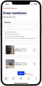 • Una vez seleccionado el cliente, verás la lista de estaciones asignadas junto con un botón azul titulado “Scan”.