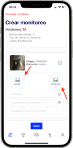 • Al escanear la estación, se abrirá un formulario donde podrás tomar fotos antes y después del servicio. Además, podrás completar los campos de “Actividad”, “Condiciones de la estación” y la cantidad de rodenticida utilizado.